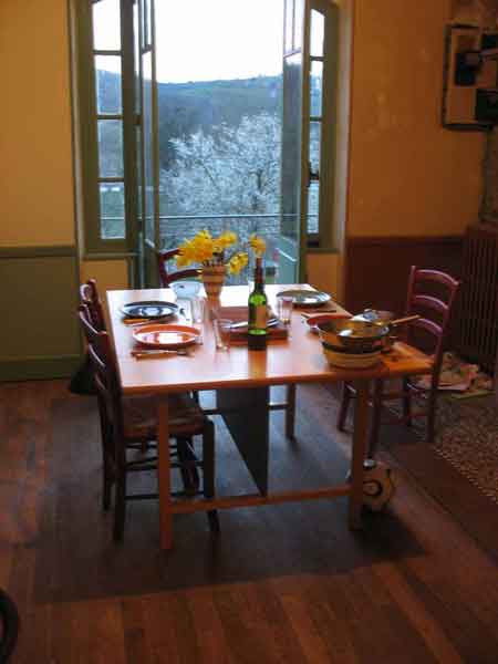 Dinsdag, 13 Maart 2007LenteIk ben al tientallen keren begonnen te schrijven hoe het ons vergaat, maar ik krijg het verhaal niet af en dat is omdat ik ook dingen moet vertellen die niet leuk zijn. Want, wil de wereld wel weten hoe beroerd het kan zijn om naar Frankrijk te emigreren? Of zal ik het gebruikelijke kletsverhaal afdraaien, zoals ´de zon schijnt hier altijd´, ´we spreken vloeiend Frans´ of ´we zijn helemaal geïntegreerd´. Kijk, de praktische problemen zijn niet erg, die zijn er genoeg en daar kom je wel overheen. Maar, laat ik het zo zeggen… er komt een moment dat de hemel bovenop je valt. Dat je je niet meer afvraagt waar je aan begonnen bent, maar dat je alleen nog maar denkt: waar bén ik in Gods naam en wat dóe ik hier? Het is de paniek die je voelt wanneer je in de wachtkamer bij de tandarts zit of vlak voor een operatie. Een irrationele angst waar geen rede tegenop kan. En dan niet te vergeten, het isolement. Want zoals ik al eerder zei: de Fransen zijn zo bien élevé dat je een breekijzer nodig hebt om verder tot ze door te dringen dan ´bonjour´ en ´ça va´. Hun gereserveerdheid, ook tegenover elkaar, is bijna ziekelijk. Goed, ik overdrijf. Natuurlijk hebben wij gesprekken die verdergaan dan dat, maar toch. Ter illustratie: hier in de kroeg kwam al jaren ´n man. Voor de gezelligheid, een borrel en iedere avond belote (klaverjassen). Aardige vent, 52 jaar, niks aan de hand. Behalve dan dat-ie op ´n dag dood was, zomaar, op kerstavond. ´Les pompiers venaient lui chercher´ (de brandweer kwam ´m halen, want brandweer is in Frankrijk tevens ambulance). En niemand die geweten had dat hij al maanden aan kanker leed. Zo eenzaam kan het hier dus zijn. Hoe dan ook, wanneer je bevangen wordt door gevoelens van paniek of heimwee dan kun je twee dingen doen: gillend terugkeren of doorzetten. En vanzelfsprekend kies ik het laatste. Ik blijf, al was het alleen maar omdat ik de taal zo prachtig vind. Hoor nu bijvoorbeeld het verschil tussen ´si demain matin tu cessais de m´aimer´ of ´as jai morruguochend zou stoppu mè vammu tu houwu´. Ja, de mensen zijn afstandelijk en soms arrogant, allemaal waar, maar ze begrijpen meer dan wie ook dat er moed voor nodig is om te emigreren. Een Fransman emigreert niet, zelden in ieder geval, het is hun ergste nachtmerrie. Familie verlaten … ondenkbaar. Maar ik ga hier niet weg. Nog niet in ieder geval. Ik heb namelijk ´n huis dat op me wacht. Want wat je niet weet is hoe het voelt om te leven als god in Frankrijk. Dat kun je namelijk alleen weten als je hier woont. Wanneer ik op ´n ochtend vol verwondering onder de bloeiende pruimenboom sta met de blauwe lucht boven me. Als ik bijna gesmoord word in een zee van geurige witte bloempjes en duizel van het gezoem van bijen die zojuist hun winterhol hebben verlaten. Als ik de lentezon op m´n blote armen voel en allerlei uitgelaten vogelgeluiden hoor dan krijg ik zin om te juichen en wil ik ook vliegen, net als de roofvogels boven ons huis. Een bloeiende pruimenboom in onze tuin Hoewel het ´s-morgens vaak nog koud is, kun je merken dat het lente is. Een dag als vandaag is ´n droom. Ik hang de was op aan de waslijn, buiten. Boven me een blauwe hemel. De zon laat zich door niets verdrijven. Ruud verwijdert klimplanten van de rots achter het huis en ik zaai Ipomé, een clematisachtige klimplant die van augustus tot oktober kelkvormige bloemen draagt. De kinderen spelen boer en boerin in het konijnenhok en poessie dartelt vrolijk om ons heen. Niemand wil eigenlijk nog naar de carnavalsoptocht in Estaing en de open dag op de school van Deirdre zijn we totaal vergeten. Ruud de rotscleaner… Om vier uur, nadat Ruud en ik tevreden naast elkaar op ons bankje de vorderingen in de tuin hebben besproken, besluiten we om toch nog even naar Estaign te gaan, een middeleeuws dorp 10 kilometer verderop. Het lijkt vakantie. In het dorp is niets meer te beleven. Bij het middeleeuwse kerkje waar twee uur geleden een uitgelaten menigte voorbij hoste hoor je nu alleen nog mussen en ander gevogelte kwetteren. Op de hoek een toeristenwinkel waar wandelstokken verkocht worden. Binnen zit ´n dame doodstil op ´n stoel achter de toonbank tv te kijken. Af en toe komt een verklede peuter aan de hand van de moeder voorbij en wij maken grapjes dat dit nu de optocht is: één kind verkleed als cowboy met moeder en drie klappende toeristen. Drie klappende toeristen… Na vele mislukte foto´s in en rondom het middeleeuwse kerkje besluiten we terug te keren naar huis. De tuin achter het middeleeuwse kerkje van Estaign Eerst gaan we nog even boodschappen doen bij de super U. We halen biologische roquefort, bladsla en walnoten voor ´n salade en pizza´s voor de kinderen. We zijn al zo gewend aan de Franse supermarkten dat we de Super U van Espalion (waar de gemiddelde Albert Heijn ruim tweemaal in past) eigenlijk al te klein vinden. Le Clerq in Rodez, dát is pas ´n supermarkt, het is zo groot dat de gemiddelde Albert Heijn er minstens twintig keer in past. Ik bedoel, in plaats van vijftig heb je er wel tweehonderd soorten toetjes en de wandelpaden zijn zo breed dat vijf volgestampte karretjes met zijspan nog zeeën van ruimte hebben. Waarom? Daarom! Gewoon, omdat ´t lekker is. Dit land is zo overvloedig, het kan niet op. Als je eraan gewend bent dat alles wat je eet verrukkelijk is, dat de zon bijna altijd schijnt en dat natuur en ruimte bijna een geboorterecht zijn dan kun je niet meer leven met karigheid. Alles hier is groot en extreem, ik heb het al eerder gezegd. De gigantische supermarkten, de eindeloos durende tv-programma´s, de radiozenders die de hele dag door, van uur tot uur dezelfde muziek draaien, de grote auto´s, de jacht en wanneer je hoopte dat dat voorbij was gaan ze weer vissen (la pêche), foire de foie, foire de porc, foire de boeuf, het gaat maar door, feesten en fuiven, vreten en zuipen en steevast driemaal per jaar op vakantie (gôh, komt me bekend voor), Fransen zijn topconsumenten