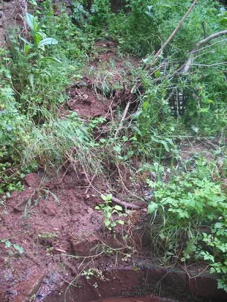 29 Mei 2008Il faut du soleil!Mijn hoofd weet dat het lente is maar m'n hart maakt zich op voor de winterslaap. Goed, van de week was het even 22 graden, maar dan moest je wel met je rug tegen de muur uit de wind in de volle zon staan. De ochtenden zijn koud en mistig, de middagen zijn onvoorspelbaar, soms koud, soms warm, maar meestal kleurloos en nat. Als ik de voorspellingen van MSN weer moet geloven dan regent het hier altijd, ik bedoel, altijd. Dat lijkt me overdreven, het regent hier bíjna altijd, maar niet altijd. Het regent hier in ieder geval al zo lang dat ik niet meer weet wanneer voor het laatst de zon scheen. Op 1 mei geloof ik. Bloemen maken plaats voor schimmels en slijmerige zwarte algen kruipen over de rand van de plantenbakken. De plantenbak naast het huis verandert langzaam in 'n bio zwembad en achter het huis ontstaat een beek, het water sijpelt onophoudelijk naar beneden de rots af en vervolgens via de achtertuin de tuin in. Sommige bloemknoppen rotten weg voor ze uit de knop komen. Zaaien is zinloos omdat al het zaad verzuipt of wegspoelt. De plaats waar we vorig jaar regelmatig stookten is onbegaanbaar geworden vanwege het water en omdat er steeds rotsblokken en aarde naar beneden vallen. We wachten al weken op een paar droge dagen zodat we het gras kunnen maaien. De buurman die ik nooit anders heb horen uitroepen dan "il faudrait de l'eau" bekende vanmiddag "il faudrait du soleil" en in onze buurtkroeg vloekte de baas het bijna uit "on en a marre!". Zelfs de krekels zingen niet meer.