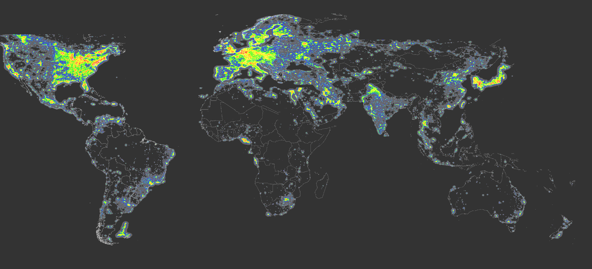 Frankrijk verkeert in de ergste economische crisis sinds jaren, er is geen geld, geen werk, geen energie en dan toch totaal nutteloze en dure lantarenpalen blijven plaatsen. Ik begrijp ’t niet, als wij geen werk en geen energie meer hebben geven we ons geld toch ook niet uit aan lantarenpalen? Maar dat doet Frankrijk wel. En niet alleen dat. De retraités blijven rijden in hun Heimers, de auto’s blijven scheuren, de zwembaden en de huizen blijven tot de nok toe verwarmd, de vliegtuigen blijven vliegen en… de computers blijven draaien. Nog wel. Maar mijn logisch verstand zegt me dat het tijd is voor Frankrijk en al die andere rijke landen in de wereld om een flinke stap terug te doen. Om deze wereld te redden moet er meer gedaan worden aan energiebesparing dan spaarlampen en de pauzestand op de computer. De wereldatlas in licht (bron: www.lightpollution.it) Maar goed, het jaar 2012 nadert en dus adviseert minister Ter Horst iedereen een noodpakket aan te leggen met daarin de meest noodzakelijke middelen om bij een ramp de eerste dagen te kunnen overleven. Niet dat ’t ooit nodig zal zijn, tuurlijk niet, maar gewoon, voor ‘t gevoel.